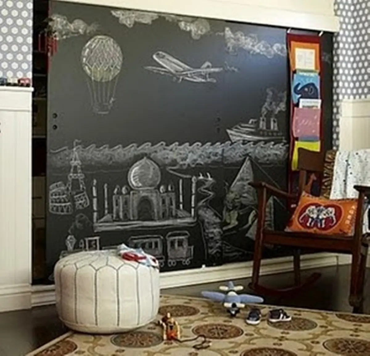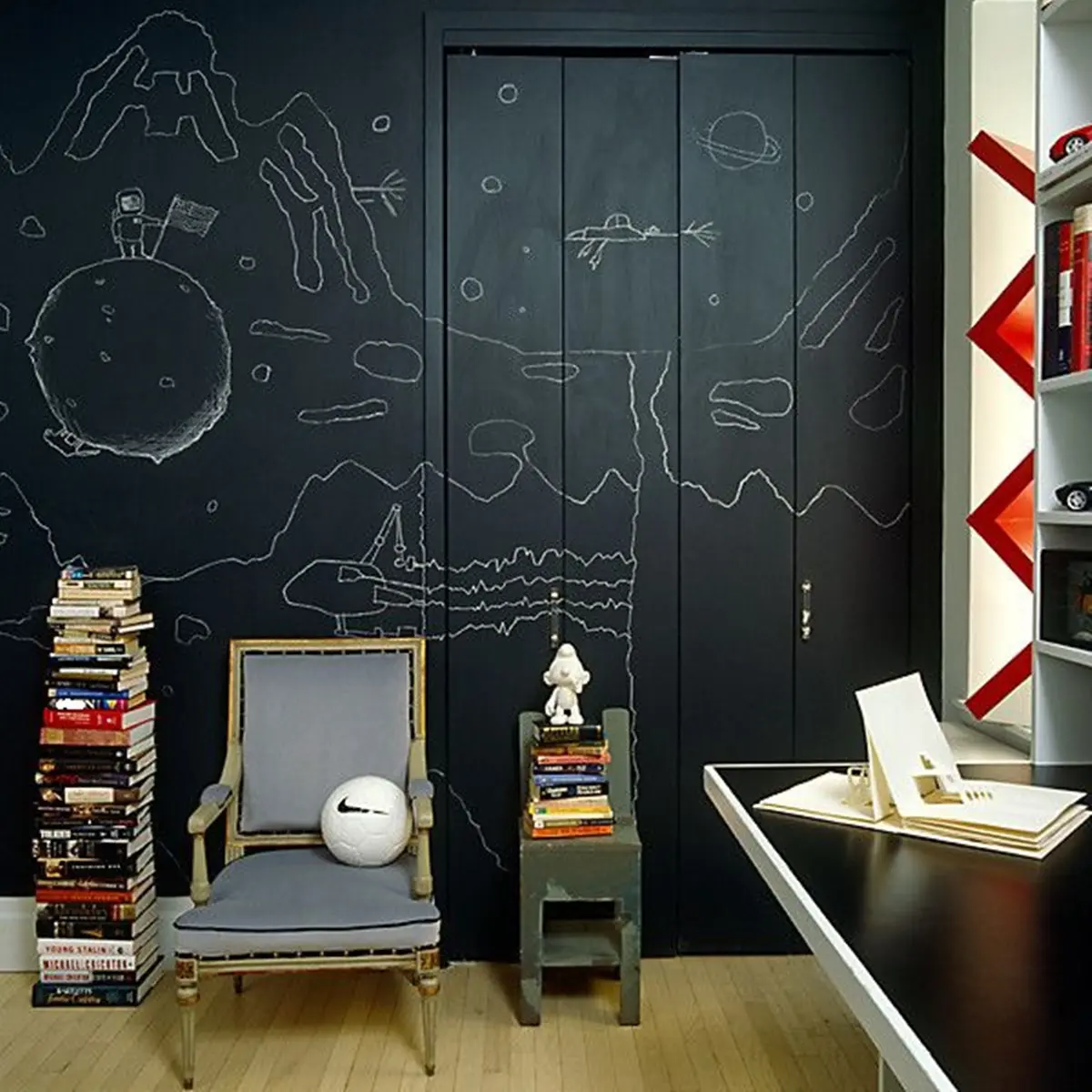 Ένας μαυροπίνακας στο ντουλάπι των ρούχων, μπορεί να αποδειχθεί εξυπηρετικός. Εδώ μάλλινα, εδώ πουκάμισα, εδώ φορέματα, εδώ… Εκεί μπορείς να παίζεις και τρίλιζα ή κρεμάλα, άμα θέλεις. Εκεί μπορείς να σβήνεις και να γράφεις κεφάλαια της ζωής σου. Εκεί μπορείς να φτιάχνεις σχέδια και σχήματα που αγαπάς. Ένα τρίγωνο, ένα τετράγωνο, τον κύκλο με την κιμωλία.